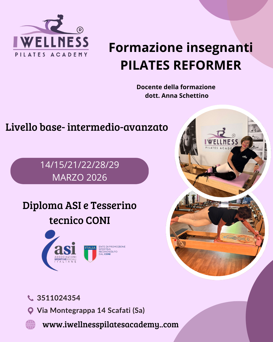 IWellness Pilates Academy vuol dire insegnamento e formazione Pilates dal 2015.